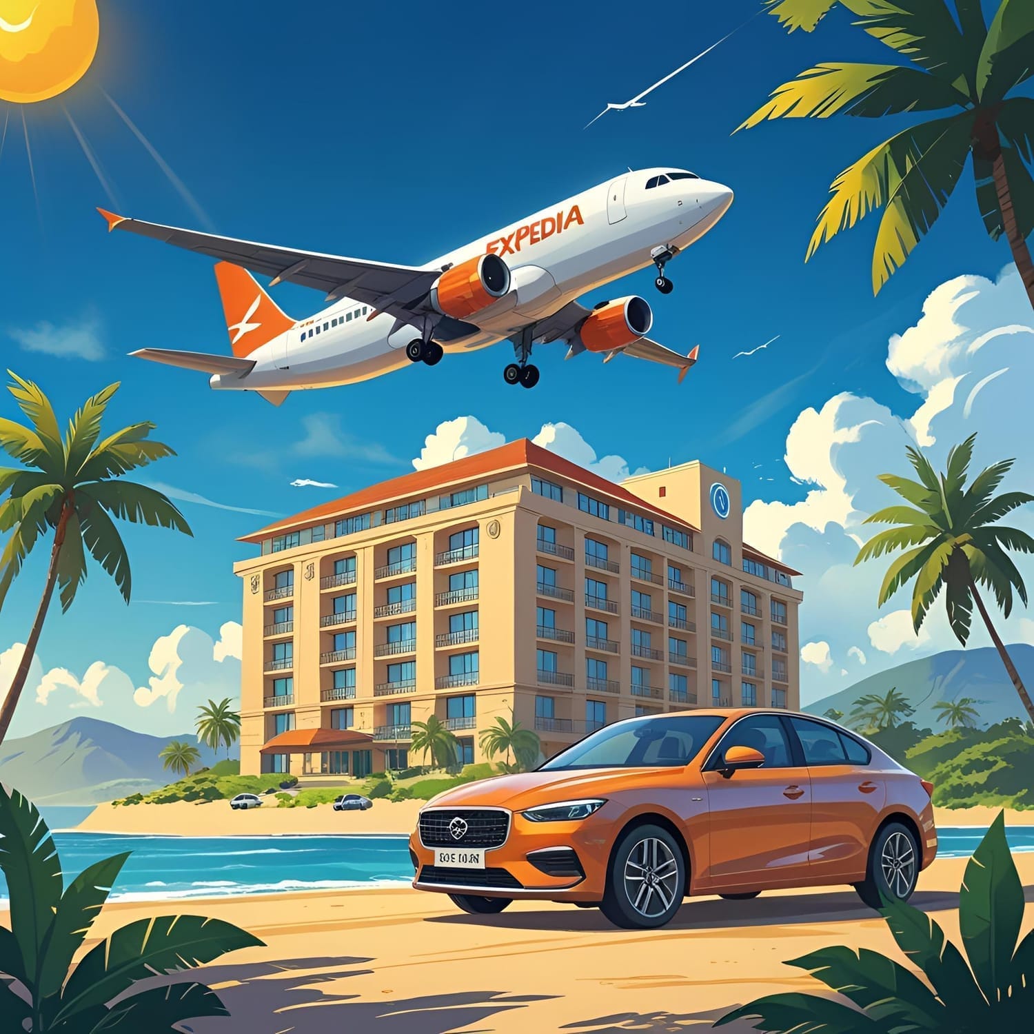 Image AI generated to illustrate flight+hotel+car bundle