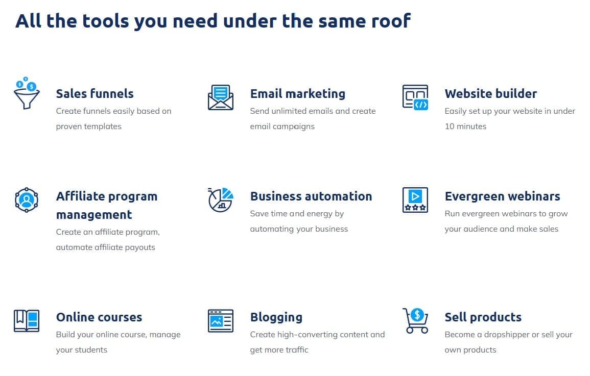 All-in-One Platform – No need to juggle tools. Get funnels, email, automation & more in one place.